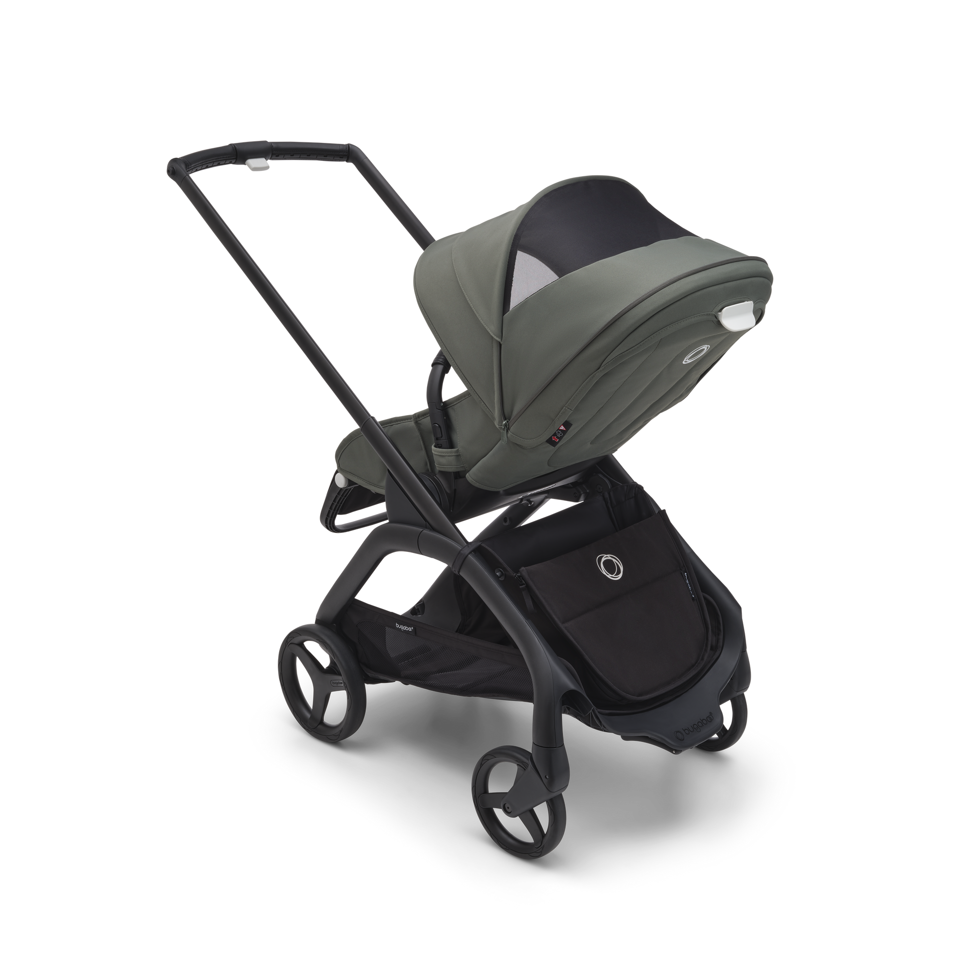The Bugaboo Dragonfly Complete Bundle in Black/Forest Green is the future city stroller where comfort meets compact. From the day your little one is born, there are many configurations to best suit you and your baby's needs, including a full-size bassinet with a built-in breezy panel. The extendable UPF50+ canopy is multi-functional rain or shine, including a pop-out visor for added protection and for toddlers, the easy buckle harness is padded for guaranteed comfort. On top of that, your essential everyday functionalities like stroller folding, bassinet removal or handlebar adjustments can be completed with just one hand.