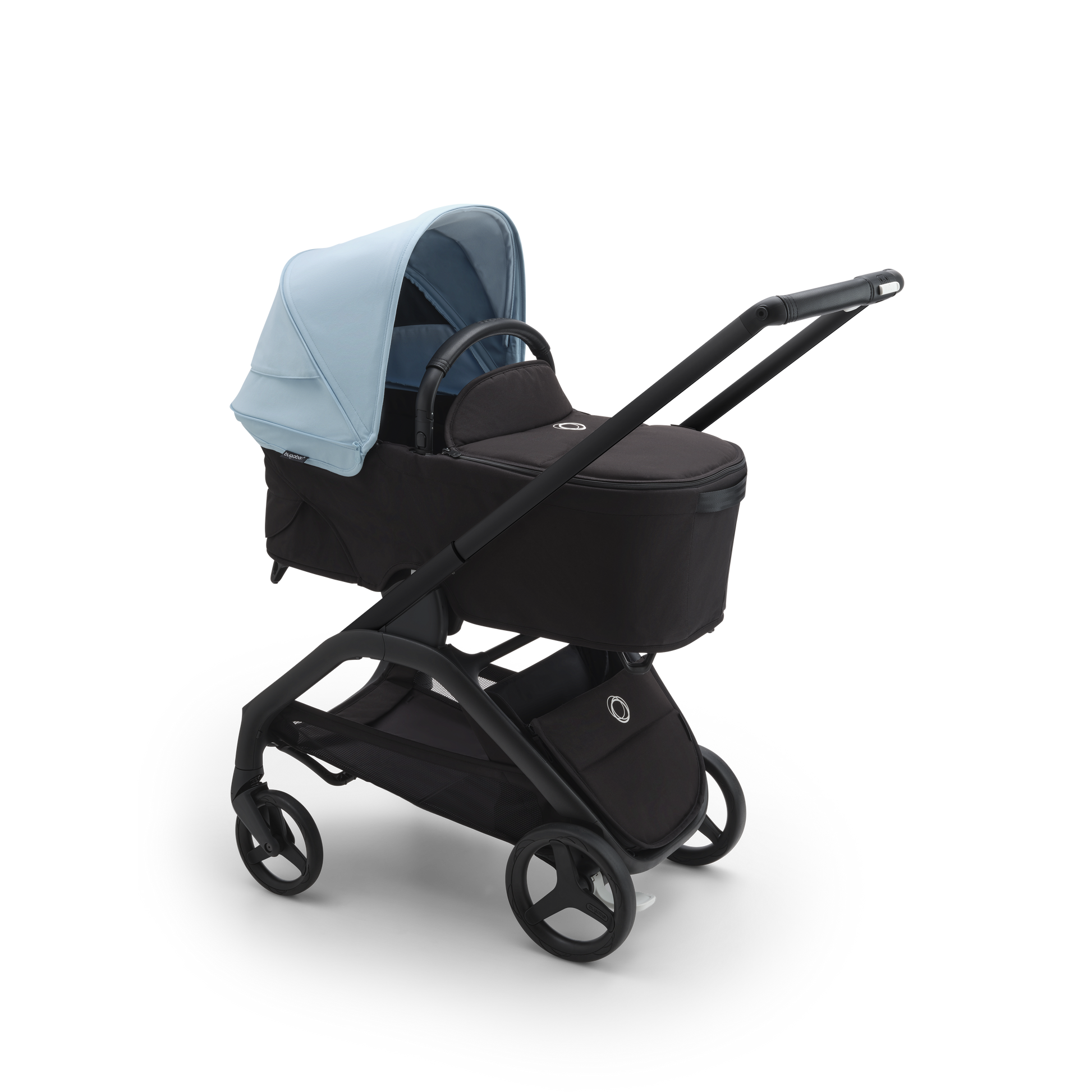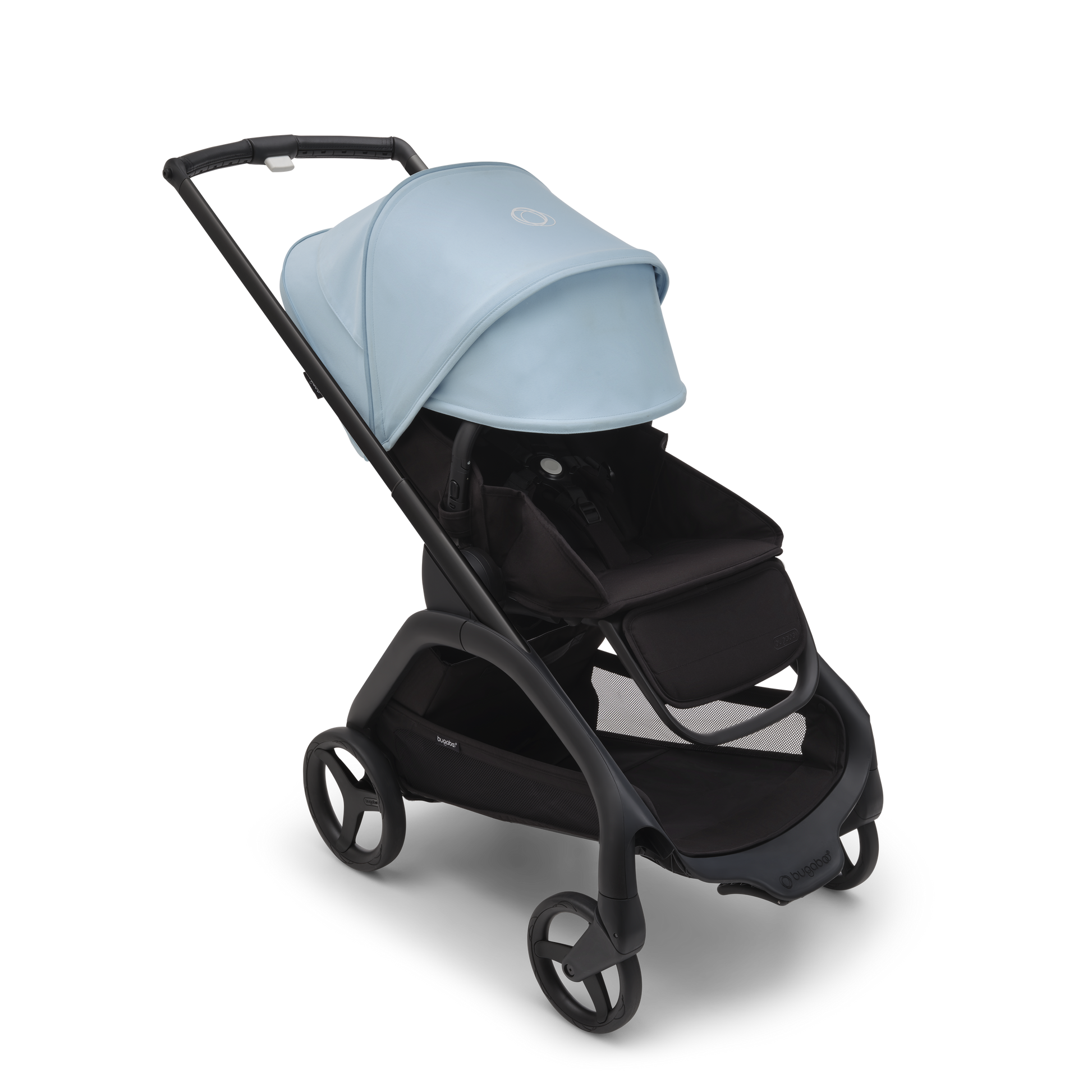 The Bugaboo Dragonfly Complete Bundle in Black/Skyline Blue is the future city stroller where comfort meets compact. From the day your little one is born, there are many configurations to best suit you and your baby's needs, including a full-size bassinet with a built-in breezy panel. The extendable UPF50+ canopy is multi-functional rain or shine, including a pop-out visor for added protection and for toddlers, the easy buckle harness is padded for guaranteed comfort. On top of that, your essential everyday functionalities like stroller folding, bassinet removal or handlebar adjustments can be completed with just one hand.