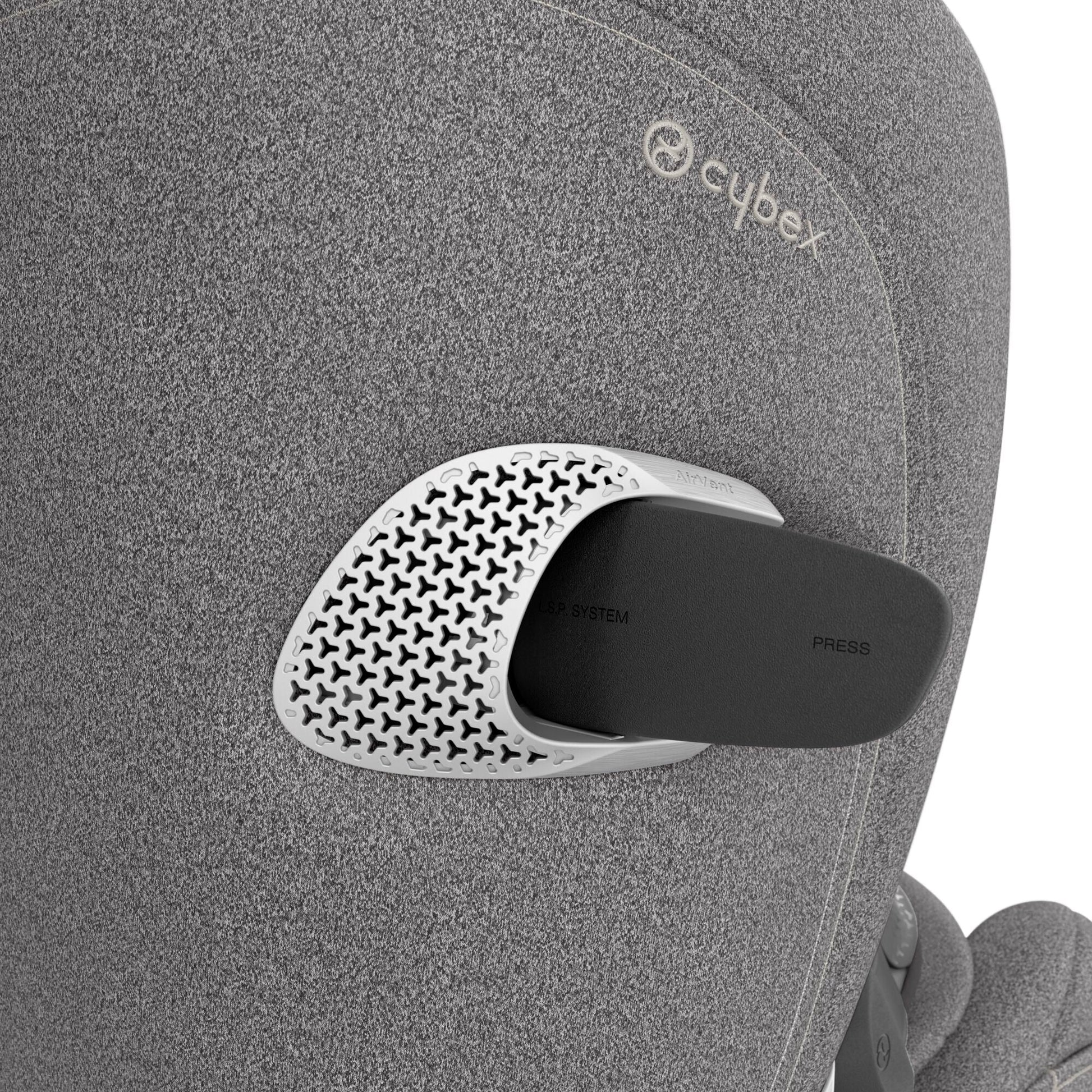 The Cybex Anoris T2 i-Size Plus in Mirage Grey is a world leader in forward-facing car seat technology. A full-body airbag is housed in a small impact shield, upgraded with a depth-adjustment feature for a snug fit and freedom to move. Forward-facing travel allows more legroom, as well as easy interaction and eye contact with your child via your rear view mirror. On hot days, all-round air ventilation is enhanced by innovative mesh that's six times more breathable than normal car seat fabrics, while a retractable sun canopy gives shade. After the Cloud T i-Size, the Anoris T2 i-Size is the ideal successor until your child turns seven.