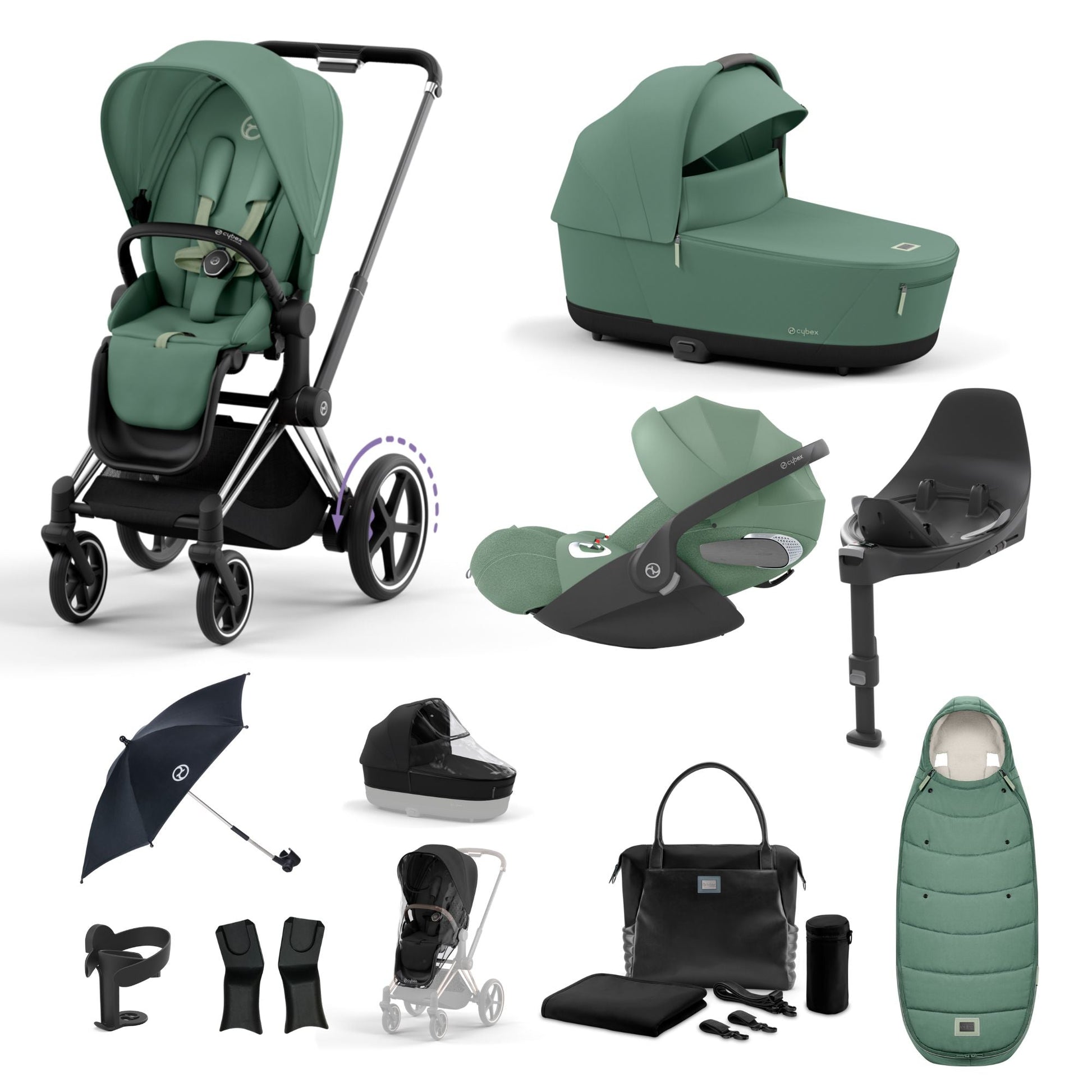 The CYBEX e-PRIAM Bundle in Leaf Green combines e-technology with design, serves as base for your New Generation e-Priam pushchair and is available in four elegant colours. You can attach one of four different options to the frame, depending on the age of the child: the Lux Carry cot, the Lite Cot, the Cloud T i-Size baby car seat or the New Generation Priam Seat Pack. Lux Cot, Lite Cot and Cloud T i-Size car seat must be purchased separately.