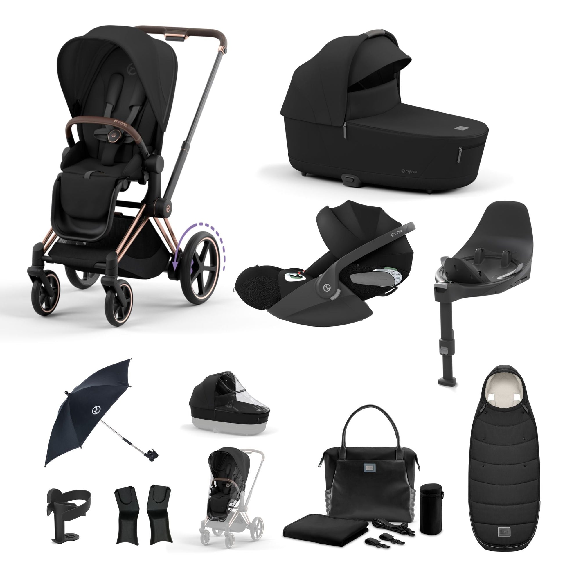 The CYBEX e-PRIAM Bundle in Sepia Black combines e-technology with design, serves as base for your New Generation e-Priam pushchair and is available in four elegant colours. You can attach one of four different options to the frame, depending on the age of the child: the Lux Carry cot, the Lite Cot, the Cloud T i-Size baby car seat or the New Generation Priam Seat Pack. Lux Cot, Lite Cot and Cloud T i-Size car seat must be purchased separately.