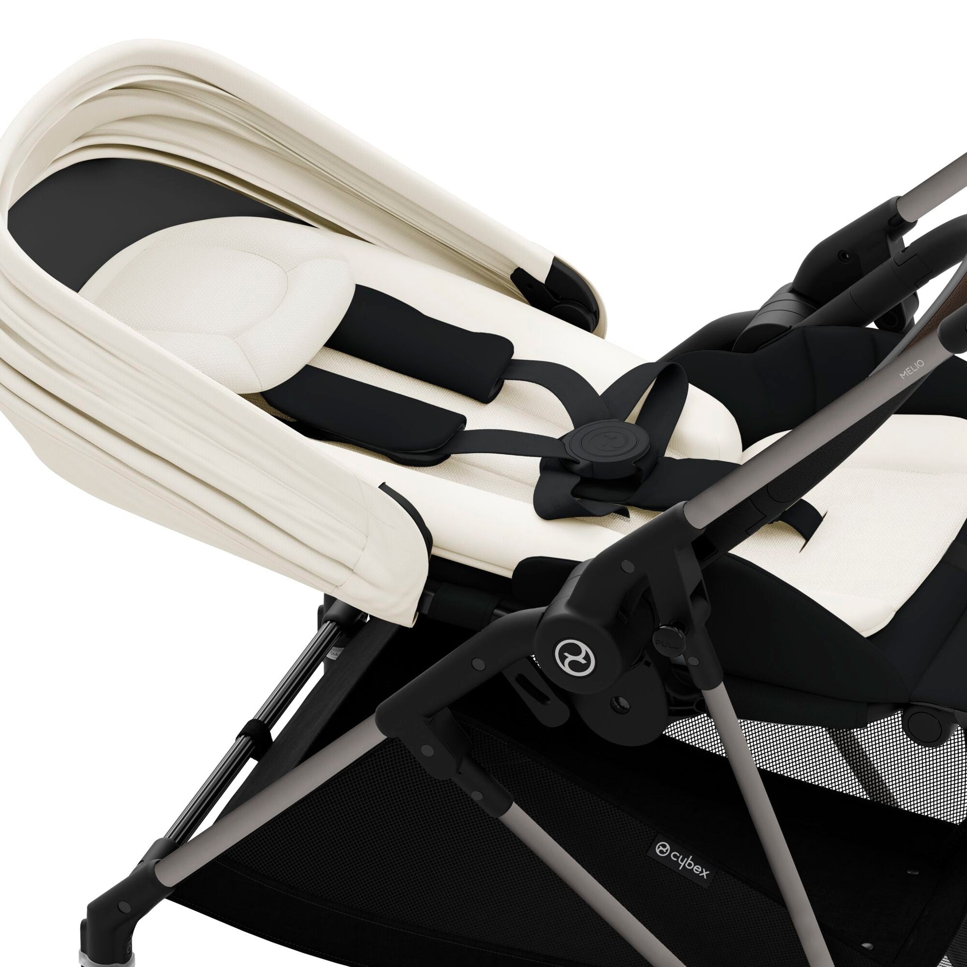 The Cybex Melio pushchair in Canvas White makes it easier than ever to boutique, brunch, and weave through life in the big city.
