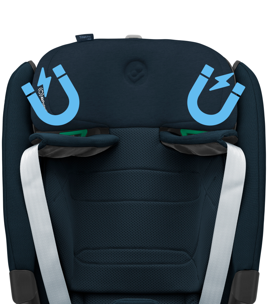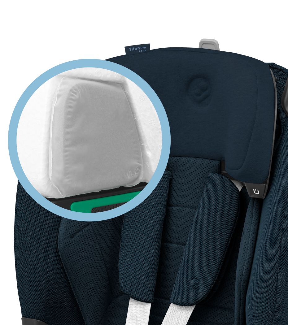- Titan Pro i-Size features patented AirProtect® safety cushions in the headrest, which reduce the risk of head injury by up to 20% and enhances the comfort for your child.