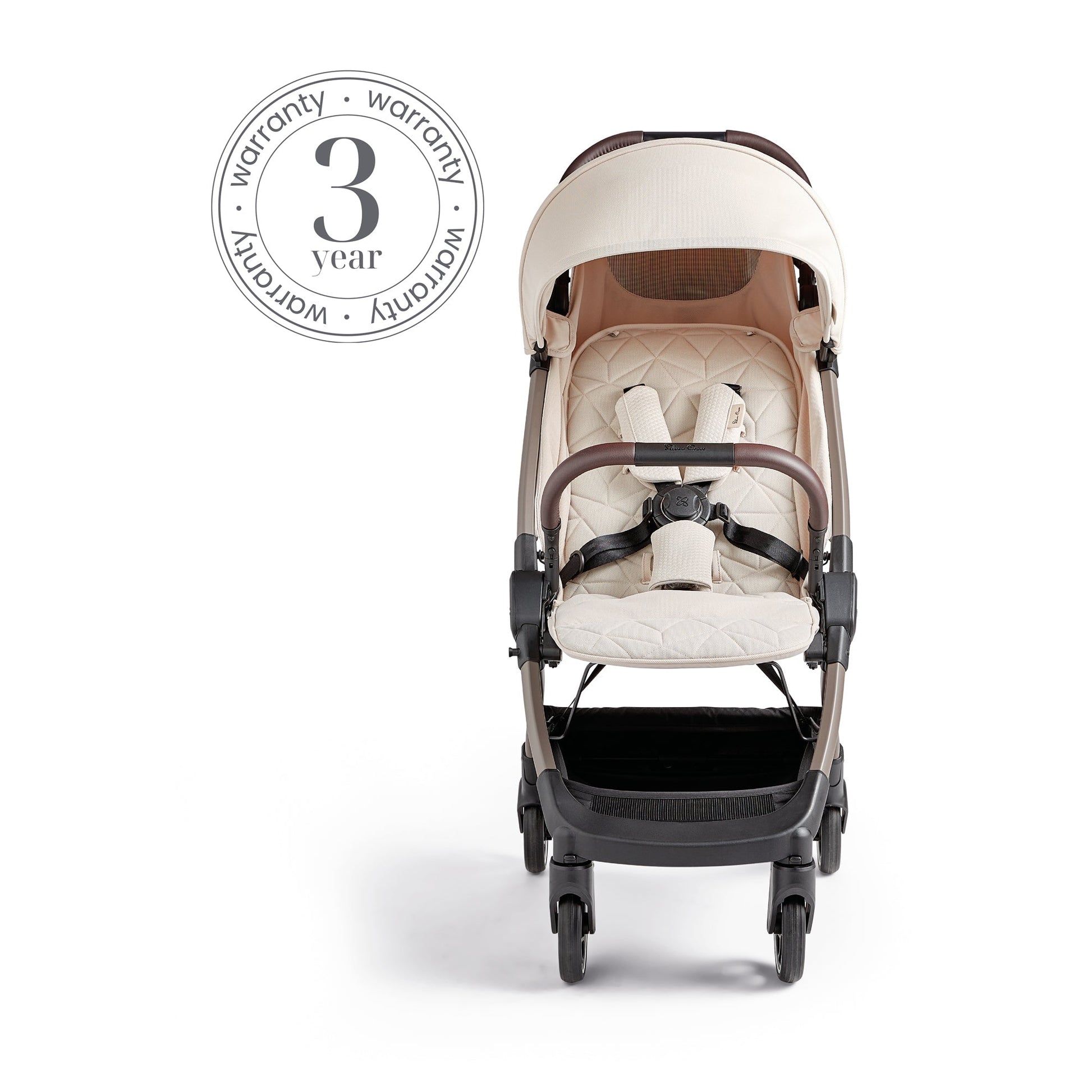 The award winning Silver Cross Clic in Almond is a lightweight, stylish and foldable in a flash (with one hand). Perfect for a busy life on the move with your little one.