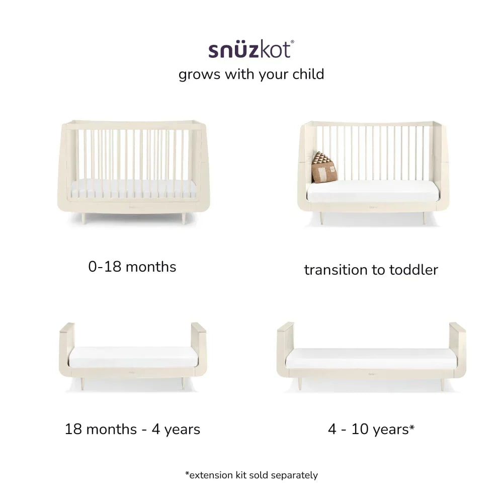 The Snuzkot Skandi Cot Bed in Cashmere, as part of the SnüzKot Collection. Converts from birth to approx. 10 years.